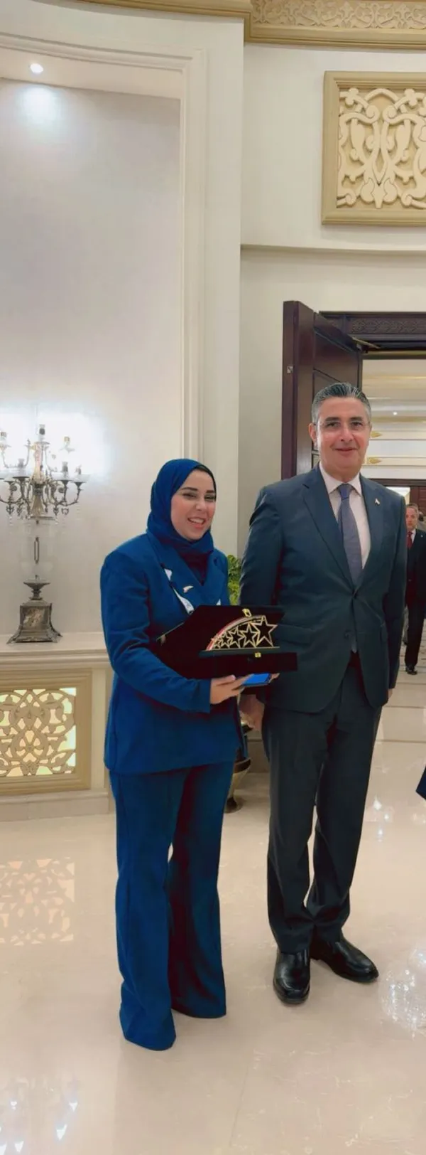 إخلاص الجارحي أثناء تسلم الجائزة