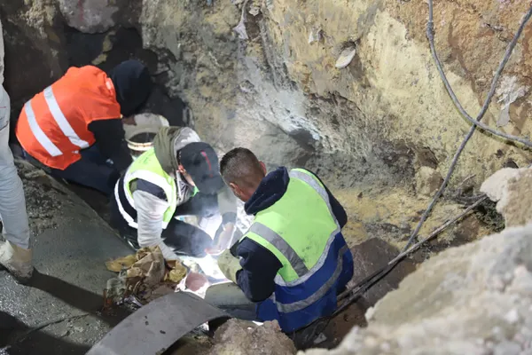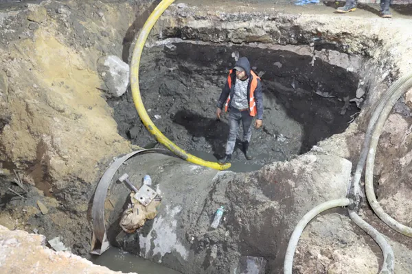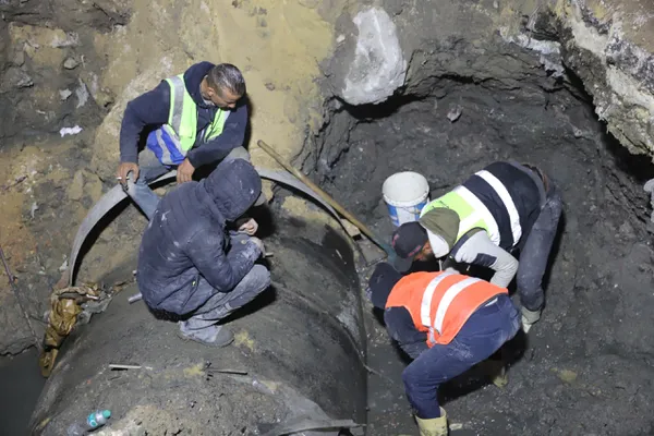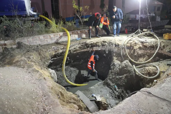 تواصل شركة الصرف الصحي بالإسكندرية، برئاسة المهندس سامي قنديل رئيس مجلس الإدارة والعضو المنتدب، أعمال إصلاح هبوط أرضي مفاجئ بخط طرد سموحة الجديدة.