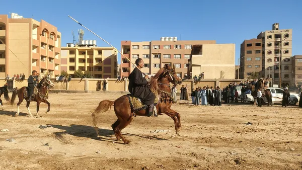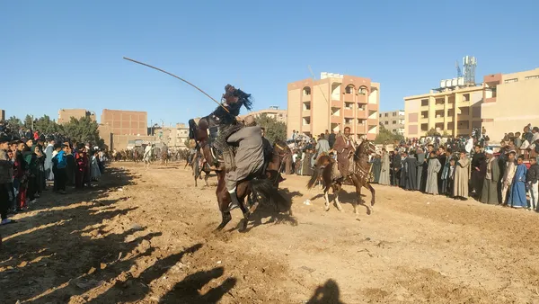 في ساحة ممتدة خلف مسجد سيدي عبد الرحيم القنائي بمحافظة قنا، يتوافد العشرات من الخيالة من مختلف مراكز المحافظة، إلى جانب مشاركين من المحافظات المجاورة، للمشاركة في 'المرماح' الذي يُعد الأكبر من نوعه داخل مدينة قنا، ضمن فعاليات احتفالات مولد سيدي عبد الرحيم القنائي.