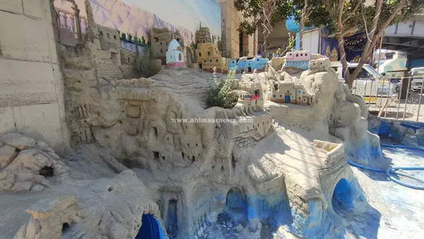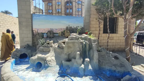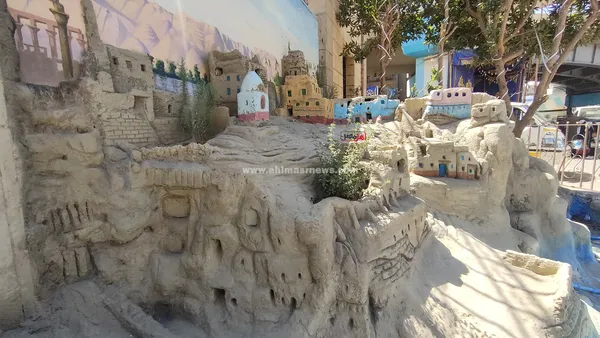 ويُظهر العمل الفني مجسمات بارزة لبيوت القرية الصعيدية القديمة، صُممت بأسلوب يحاكي البيوت الطينية المتدرجة فوق الجبال، مع تفاصيل دقيقة للنوافذ الصغيرة والسلالم والممرات الضيقة، في مشهد يعكس بساطة الحياة في صعيد مصر قديمًا.