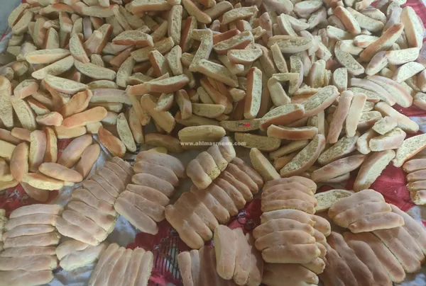 نشكل العجين على شكل أقراص دائرية، أو مستطيلات متوسطة الحجم والسمك، ثم نرصها في صينية مدهونة بالزيت، ونتركها في مكان دافئ لمدة 30 دقيقة.