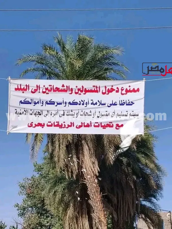 وجاء فى نص اللافتة تحذير واضح :' ممنوع دخول الشحاتين، والمتسولين، القرية حفاظا على سلامة أولادكم وأسركم، وأموالكم' فى رسالة مباشرة تعكس قلق المجتمع المحلي من تزايد هذه الظاهرة، وتأثيرها على الحياة اليومية داخل القرية.