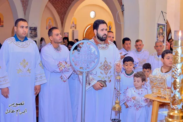 وترأس نيافته صلوات باكر والقداس الإلهي وصلوات اللقان، بمشاركة الآباء الرهبان من القمامصة والقساوسة، وبمشاركة مجمع رهبان دير الأنبا متاؤس الفاخوري، والأخوة طالبي الرهبنة والشمامسة والشعب القبطي، ثم قام الأنبا يواقيم برشم الآباء الكهنة والشمامسة والشعب القبطي بماء اللقان .