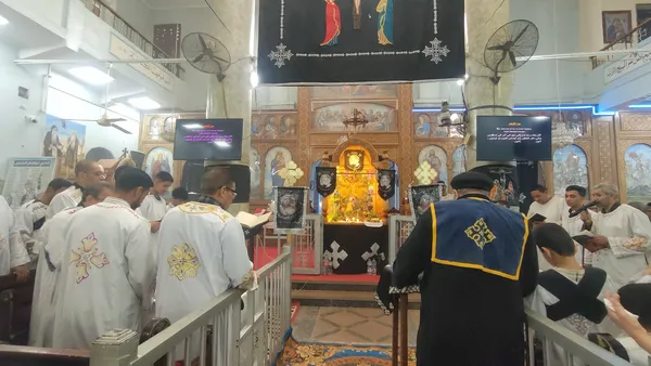 عرض' أهل مصر' بثاً مباشراً ،اليوم، من صلوات الجمعة العظيمة بكنيسة أبي فام الجندي بقرية المراشدة التابعة لمركز ومدينة الوقف شمال محافظةقنا بمشاركة عدد من الآباء، ووسط حضور من المصلين الذين توافدوا منذ الصباح للمشاركة في الصلوات.