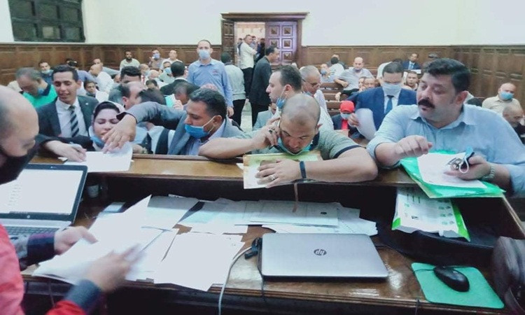 ازدحام أمام المحكمة الابتدائية بالمنصورة