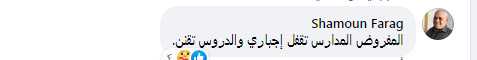 وأشار شاميون فراج إلى أنه لابد من غلق المدارس خلال هذه الفترة للحفاظ على أرواح الطلاب، كما يجب تقنين الدروس الخصوصية للطلاب للوقاية من الإصابة بالفيروس، قائلًا: 'المفروض المدارس تقفل إجباري والدروس تقنن'.