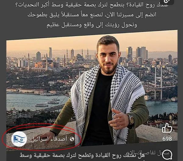 يرصد التحقيق ما وصفه بنشاط منظم لعدد من الصفحات التي تحمل اسم “أصدقاء إسرائيل”، والتي ظهرت خلال فترة زمنية متقاربة، وتستهدف مستخدمين في دول مثل مصر وتركيا وليبيا، وتعرض هذه الصفحات إعلانات ممولة تبدو في ظاهرها عادية، تدعو الأفراد الذين يمتلكون “روح القيادة” أو الرغبة في التعاون إلى التقديم عبر روابط مرفقة، ما يمنح الانطباع بأنها فرص عمل أو مبادرات تعاون مدني.