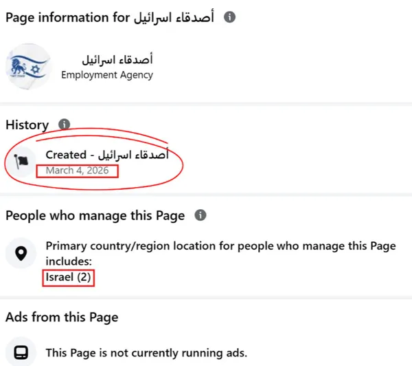 وفيما يتعلق بالانتشار الجغرافي، يشير التقرير إلى أن الصفحة الأولى استهدفت العرب المقيمين في تركيا، وتم إنشاؤها في مارس 2026، وتدار من داخل إسرائيل. وبعدها بيوم واحد فقط، ظهرت صفحة مشابهة تستهدف المستخدمين في مصر، بنفس الاسم تقريبًا ونفس أسلوب العمل، ما يعكس تنسيقًا واضحًا. كما تم رصد صفحة ثالثة تستهدف ليبيا، لكنها اعتمدت على استراتيجية مختلفة، حيث ركزت على استقطاب أفراد لديهم خلفيات عسكرية أو أمنية، من خلال دعوات مباشرة مثل “هل لديك خبرة عسكرية؟”.