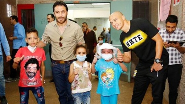 شاهد.."الصقر وطلبه" يرسمان البسمة على وجوه أطفال مستشفى أبو الريش