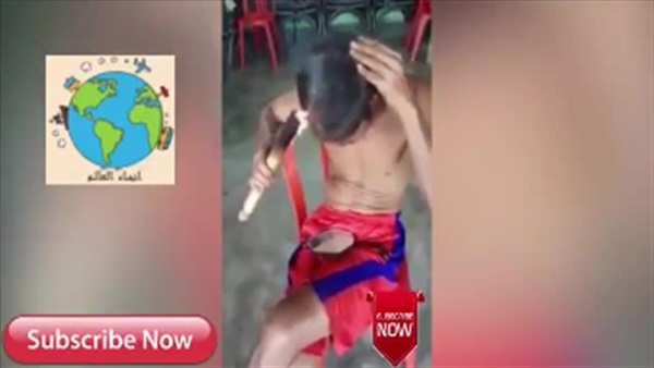 أغرب طرق حلاقة الشعر.. رجل يقصر شعره باستخدام شعلة نار ضخمة في الشارع