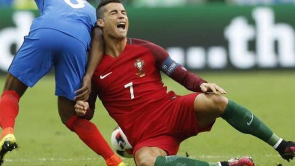 بالفيديو.. رونالدو يغادر نهائي اليورو بسبب الإصابة