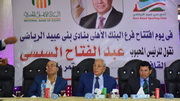 محافظ الدقهلية ووزير الشباب يفتتحان فرع البنك الأهلي بنادي بني عبيد الرياضي