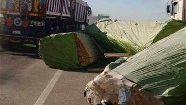 انقلاب سيارة نقل محملة بالأخشاب بجوار كمين الشعانية في قنا