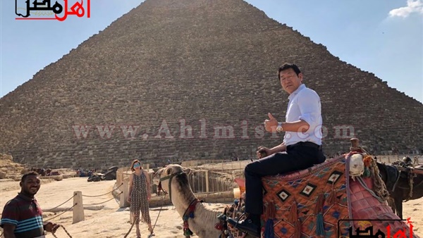 بالصور.. رئيس الاتحاد الدولي للجمباز ينبهر بآثار مصر في الاهرامات