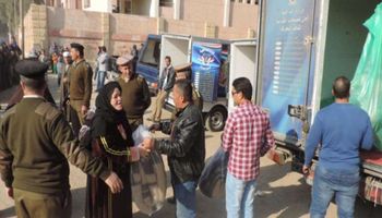 "الداخلية" توزع بطاطين وسلعا غذائية بالمجان في الفيوم.. صور