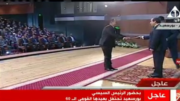 محافظ بورسعيد "يقلد" السيسي خلال افتتاح المجمع الثقافي الترفيهي