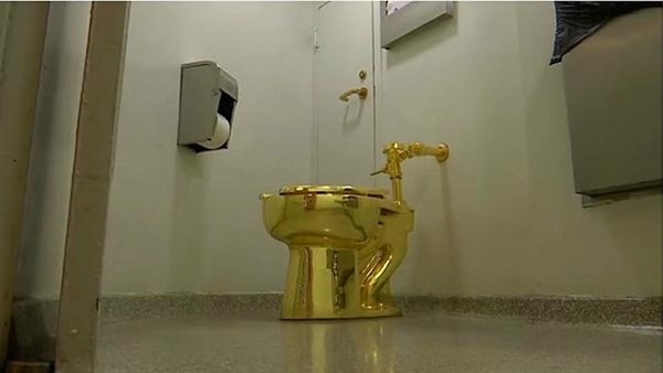 والبديل في رأيهم كان مرحاض من الذهب عيار 18، أُطلق عليه اسم "أمريكا" فيما وصفه المنتقدون بأن سخرية مقصودة تستهدف الثروة المفرطة فى البلاد، وكان المتحف قد عرض هذا العمل لمدة عام فى الطابق الخامس وسمح للزائرين باستخدامه، إلا أن العرض انتهى، وأصبح المرحاض متاحا لو كان لدى الرئيس والسيدة الأولى أى اهتمام بوضعه فى البيت الأبيض.