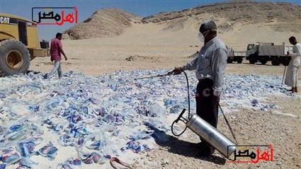 وأضاف حازم أبو الخير رئيس الوحدة المحلية لمركز ومدينة جهينة أن الوحدة المحلية قامت بالاشتراك مع الإدارة الصحية وإدارة التموين، وقوة من مركز شرطة جهينة بتنفيذ قرار النيابة العامة وبحضور مفتشي الأغذية، ومسئولي البيئة بالإدارة الصحية، ومفتشي التموين حيث تم إعدام 1400 باكته أرز بكل باكته 20 كيس بإجمالي 28 طن أرز وذلك لإنها غير مطابقة للمواصفات القياسية رقم 2244، لزيادة العدد الكلى للفطريات والخمائر وتم النقل بسيارات الوحدة المحلية إلى الظهير الصحراوى بالجبل الغربى بدائرة مركز جهينة، وتم تفريغ الأكياس والرش بمادة مطهرة، وحفر حفرة عميقة بلودر الوحدة المحلية، وتم الردم بالرمال بطريقة صحية وآمنة للحفاظ على صحة المواطن.
