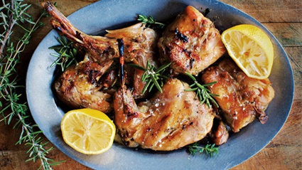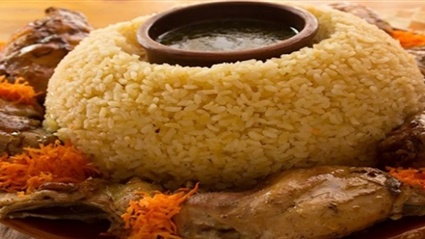 - يقدم طبق الأرانب مع طبق من الملوخية.