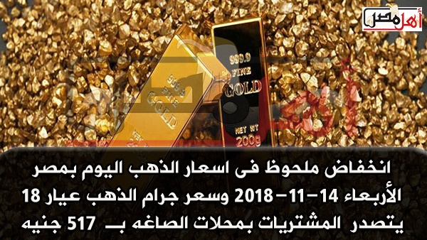 بالمصنعية انهيارها، وحدث انخفاض ملحوظ فى اسعار الذهب اليوم بمصر الأربعاء 14 -11 -2018 بقيمة جنيهين عن سعر الذهب بالأمس، وبدأ العديد