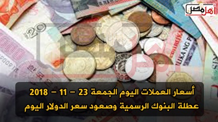 سوق الصرافة يتعافي من حالة الركود الذى مر بها الأيام الماضية، وشهدت أسعار العملات اليوم الجمعة 23 -11 - 2018 ارتفاع طفيف وجاء صعود سعر