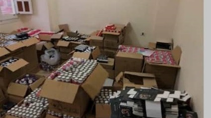 كما نجحت مباحث المصنفات برئاسة اللواء محمد طاهر مدير الإدارة فى ضبط 2 عبوة بلاستيك كبيرة الحجم بداخلها نفس المادة؛ وواحد ميزان حساس ديجيتال؛ وماكينة تغليف؛ وبإستمرار التفتيش تم ضبط 20700 عشرون ألف وسبعمائة جنيه مصرى متحصلات مبيعات المنتجات مجهولة المصدر؛ وبتفتيش الطابق الرابع تم ضبط 4 تليفون أرضى تستخدم فى تلقى المكالمات ومداخلات القناة الهاتفية من المشاهدين؛ وبتفتيش الطابق الخامس تم ضبط الأتى؛ 6 كاميرات للمحترفين؛ 2 مايك؛ 6 جهاز صوت لاسلكى.