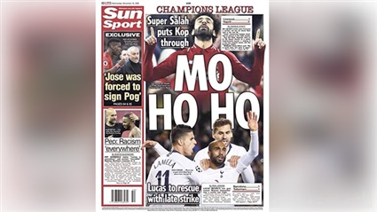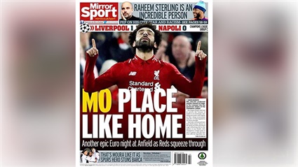 ميرور عنونت في صدر غلافها " مو.. مكان مثل المنزل، فيما أشادت صحيفة "سبورت" هي الأخرى بالهدف ونشرت صورة "مو" قبيل هزه الشباك.