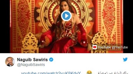 نشر رجل الأعمال نجيب ساويرس، مقطع من أغنية بشرى الجديدة كوبرا، عبر حسابه على موقع التواصل الإجتماعي تويتر، وعلق "ساويرس" بكتابة بعضاً من كلمات الأغنية: "ملك الغابة عضته قطة".