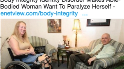 في الوقت الذي يحارب فيه ذوو الإعاقة ليصبحوا ناجحين ولا يجعلون من إعاقتهم سببا لفشلهم في الحياة وضربوا أروع الأمثلة في الفن والرياضة والعلوم ووصل بعضهم لمناصب سياسية، تقابل واحدة من أكثر القصص غرابة قد تشاهدها على الإنترنت على الإطلاق السيدة كلوي جينينجز وايت، وتعمل كيميائية وعمرها 61 عامًا وتتمتع بصحة جيدة من سولت ليك سيتي، بولاية يوتا، الولايات المتحدة الأمريكية، أحدث قرارها صدمة على مواقع التواصل فهي تحلم بأن تكون "معاقة" جسديًا، وتفضل العيش في كرسي متحرك مثل ذوى الأعاقة .
