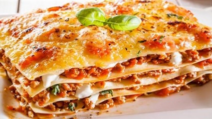 10- تقطع اللازانيا وتقدم ساخنة مع المشروبات الباردة، ويفضل أن يقدم معها المخللات.