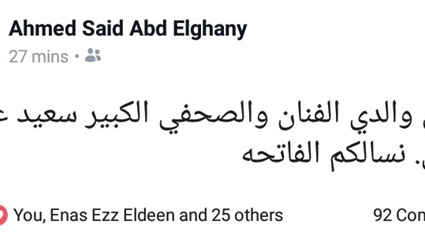 توفى صباح اليوم الجمعة 18 يناير الفنان الكبير سعيد عبد الغني بعد صراع مع المرض، وقد أعلن الخبر ابنه الفنان أحمد سعيد عبد الغني عبر حسابه الشخصي بموقع التواصل الإجتماعي "فيسبوك" وكتب: "توفي والدي الفنان والصحفي الكبير سعيد عبد الغني. نسالكم الفاتحة".