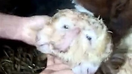 صُعق مربي الحيوانات عندما وضعت إحدى العنزات التي يربيها طفلها الغريب الذي ولد برأسين وأربعة عيون وثلاثة آذان.