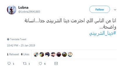 وأخر تابع: "انا من الناس اللي احترمت دينا الشربينى جدا...انسانة واضحة...#دينا_الشربيني".