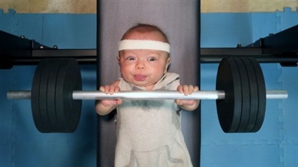واستكمل أحدنا كان يمسك به في الوضعيات المختلفة، وبعد ذلك أقوم بتعديل الصور لحذفنا منها، لذا يبدو أنه يفعل كل شيء بنفسه "أجد صورالأطفال المولودين حديثا الملتقطة مملة بعض الشيء، لذلك أعتقد أنني أصفت لها نكهة مميزة قليلاً بهذه الطريقة،"أنا وزوجتي نحب الفكاهة، لذا أحببناها على حد سواء"