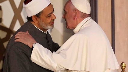 وتتصف العلاقة الأخوية بين الإمام الطيب والبابا فرنسيس بطابع خاص، كونها تستند إلى ما يجمع الرجلين من خطاب ديني منفتح، يعلي من شأن القيم الأخلاقية والإنسانية التي جاءت بها تعاليم الأديان، ويسعى لجعلها واقعا معاشا، يداوي آلام المحرمين، ويأخذ بيد الفقراء والمشردين، وتقود البشرية في طريق صنع السلام والتسامح.