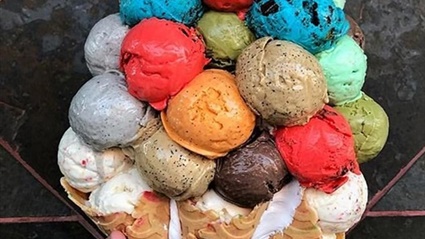 ويقدم متجر الآيس كريم في مدينة نيويورك لعملائه نوعًا خاصا من المعاملة الرومانسية، حيث يقدم ما يقرب من 20 كرة من الآيس كريم اللذيذ، ويبيع أحد محلات الآيس كريم المحشو في East Village في مانهاتن الأمريكية، لعملائه الذين يدللون أنفسهم، باقة آيس كريم بدلا من باقة الزهور مقابل 50 دولارًا.