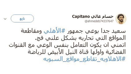 تصدر هاشتاج "#الاهلاويه_تقاطع_مواقع_السبوبه" موقع التواصل الاجتماعي "تويتر"، في إطار الرد على بعض المواقع الإليكترونية والصحف الورقية والقنوات الفضائية، في الترويج لما أسماه المغردون على الهاشتاج بالحرب النفسية على النادي من خلال نشر الشائعات.