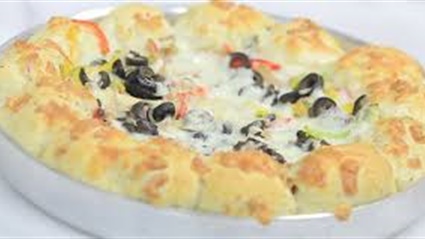 نقوم بخلط الخميرة، والسكر، والماء الدافئ ونتركهم حتى يمتزجا جيدا، ثم نضع الدقيق في إناء كبير ونضيف إليه الملح والزيت ثم نبدأ بالعجن حتى تتكون عجينة مطاطية ولينة، ونشكل العجينة بشكل كرة ونضعها في وعاء كبير الحجم مدهون بالقليل من الزيت، ثم تترك حتى تتخمر ويتضاعف حجمها، مدة ساعة ونصف.
