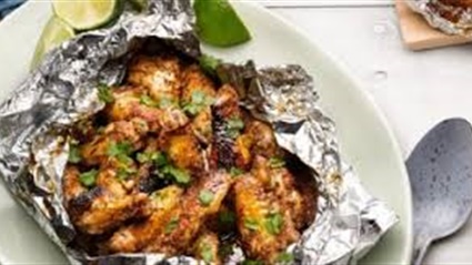 نقوم أولا بتسخين الفرن، ثم نقطع ورق الألمنيوم شرائح، ثم نضع اللحم فى شرائح الألمنيوم، ونقوم بإضافة حساء البصل عليها.