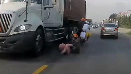 ووفقا لما ذكره موقع "ديلي ميل" البريطاني، بدأ الفيديو الذي انتشر على عدد من مواقع التواصل، عندما كانت الأم تحمل ابنها على دراجة نارية يقودها الزوج، على الطريق السريع في منطقة "غوي" بمقاطعة "نام دينه" في فيتنام، وقامت سيارة بصدم دراجة الزوج، متسببة في ميل الدراجة وسقوط الأم وطفلها على الطريق السريع، فيما انزلق الطفل نحو منتصف الشارع، باتجاه مقطورة مسرعة في الاتجاه المعاكس على الجانب الآخر من الطريق.