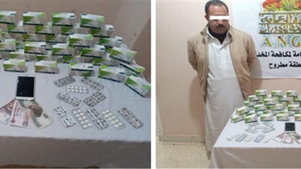 ضبط ( محكوم عليه فى 3 قضايا "تبديد") لقيامه بالإتجار فى المواد المخدرة، وذلك فى كمين أعد لضبطه حال تواجده بدائرة قسم شرطة مطروح، وبحوزته ( عدد 5000 قرص مخدر) .