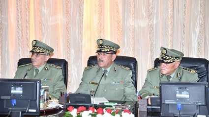 ترأس الفريق أحمد قايد صالح، رئيس أركان الجيش الجزائري، منذ قليل اجتماعا بمقر أركان الجيش الجزائري، ضم كل من قادة القوات وقادة النواحي العسكرية والأمين العام لوزارة الدفاع الوطني ورئيسا دائرتي أركان الجيش الجزائري، وهو الاجتماع الذي يندرج في إطار متابعة التطورات المرتبطة بالاقتراح الذي تقدم به الجيش الجزائري الشعبي إلى تفعيل المواد 7 و8 و102 من الدستور.