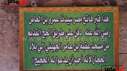 وعقب قراءتنا للكلمات المكتوبة فوق اللافتة، سألنا عن طريق الحج القديم، فعرفنا أن المكان الذي بُني فيه مسجد الصحابي عقبة بن عامر الجهيني بالمقطم، كان طريقًا يسلكه الحجيج المصريين في ذلك الوقت وصولًا إلى الحجاز، وأن عمرو بن العاص أوصى قبل موته بأن يُدفن في هذا المكان كي ينال بركة دعاء المصريين القاصدين بيت الله الحرام بمكة المكرمة.