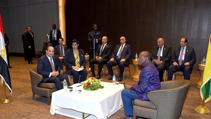كما تم تناول عدد من الملفات والقضايا الإقليمية ذات الاهتمام المشترك، فى مقدمتها سبل الارتقاء بدور وفعالية الاتحاد الأفريقي في ظل الرئاسة المصرية الحالية للاتحاد، حيث أعرب الرئيس الغيني عن دعم بلاده الكامل لمختلف التحركات المصرية في هذا الإطار، في حين أشار الرئيس إلى اعتزام مصر تسخير إمكاناتها وخبراتها لدفع عجلة العمل الأفريقي المشترك وتحقيق مردود إيجابي ملموس من واقع الاحتياجات الفعلية للدول والشعوب الأفريقية، خاصةً من خلال التركيز على عدد من الأولويات الرئيسية التي تنطلق من أجندة عمل الاتحاد الحالية، وعلى رأسها صياغة تصور متكامل لمشروعات الربط والبنية التحتية القارية.