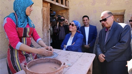 وتضمت الزيارة تفقد مدرسة الفخار بالقرية واستعراض طرق صناعة الفخار و الخزف ودور المدرسة فى نقل فنون صناعة الفخار إلى الأجيال الجديدة والشباب.