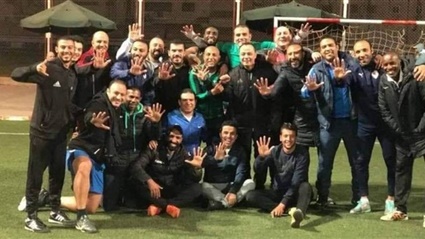 وظهر في الصورة التي ألتقطت بعد مباراة في ملعب خماسي، كل من أيمن عبدالعزيز، وطارق يحيي وعبدالستار صبري وخالد الغندور.