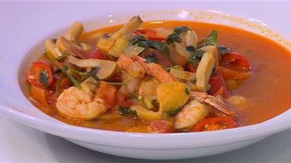 طريقة تحضير جمبري بالصلصة الحمراء والخضار في المنزل