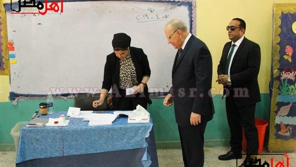 - رئيس قضايا الدولة يدلي بصوته في استفتاء الدستور 2019 بالمعادي