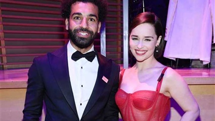 حرصت النجمة إيميليا كلارك بطلة مسلسل صراع العروش - Game of Thrones على التقاط صورة تذكارية مع لاعب كرة القدم المصري محمد صلاح لاعب نادي ليفربول، كما أنها تم تكريمها كونها شخصية مؤثرة والتي تعرف بشخصية دينيريس تارجيريان والمشهورة بلقب أم التنانين في جيم اوف ثرونز - Game of Thrones بفستان أحمر اللون.
