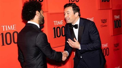 وظهر الممثل ومقدم البرامج الأمريكي جيمي فالون في حفل مجلة تايم وهو يصافح المصري محمد صلاح ويمزح معه عن انجازاته.